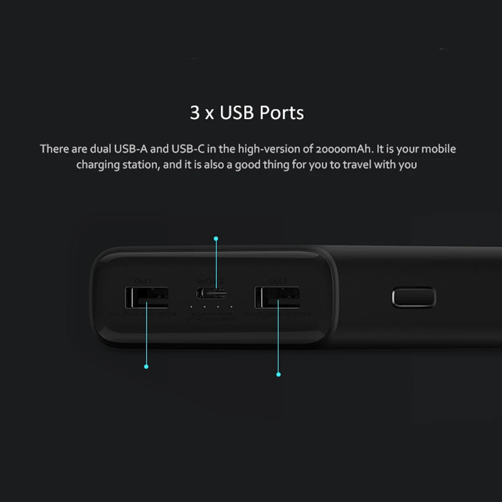 Best Xiaomi Power Bank 3 20000mAh Mi Powerbank PLM07ZM USB-C 45W Portable Charger Dual USB Powerbank for