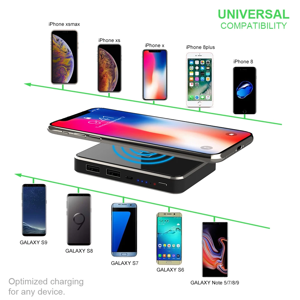 Finest 13000mAh Wireless Charger Power Bank Mobile External Battery Portable Charger for iphone xsmax 8 Pl