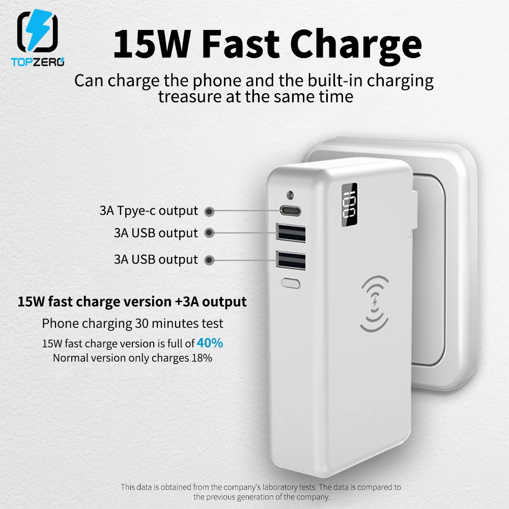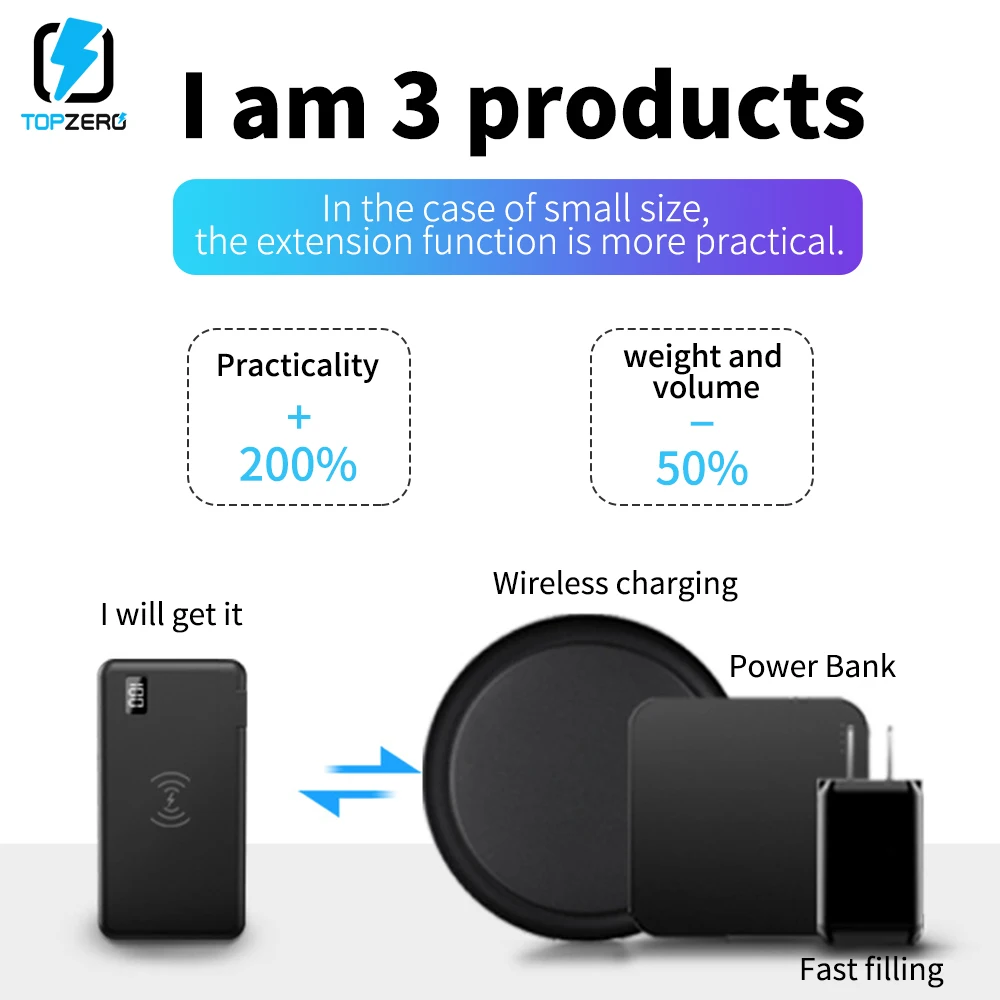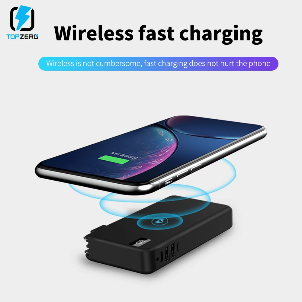 price reduction TOPZERO 10000 mAh Wireless Charger Power Bank For Xiaomi Huawei iPhone Samsung Portable LED PD QC 3