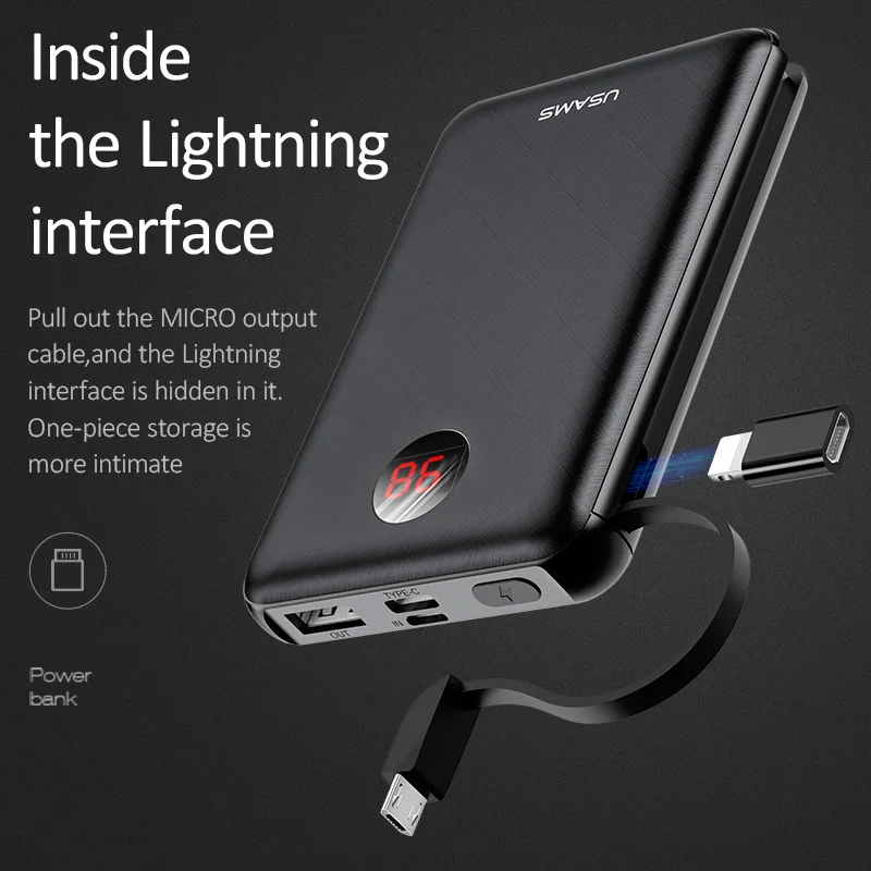 price reduction USAMS Power Bank LED Display Mini Powerbank External Battery Poverbank Charging Pover bank with USB